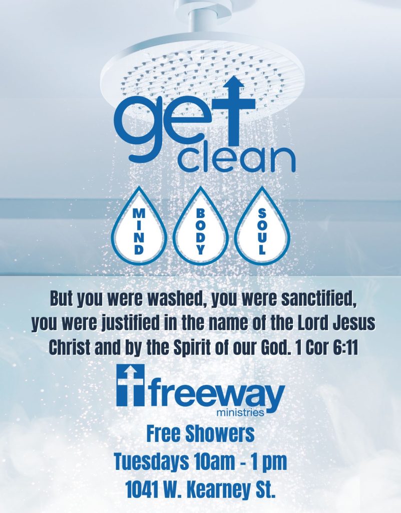 GET CLEAN runs every Tuesday from April – September. Partner with us financially, donating hygiene items and new undergarments, or by volunteering. For more information contact us at information@freeway-ministries.org